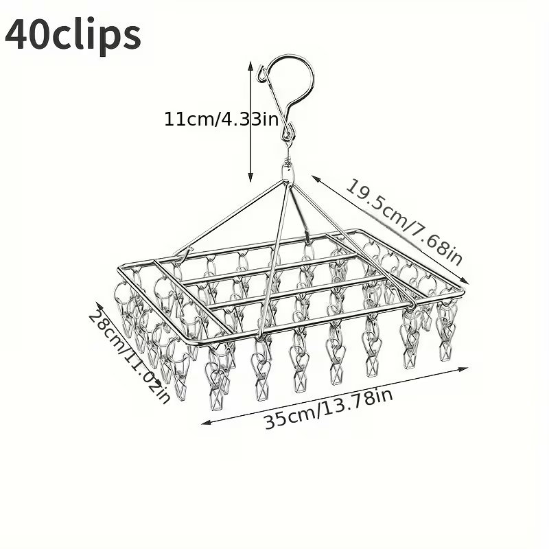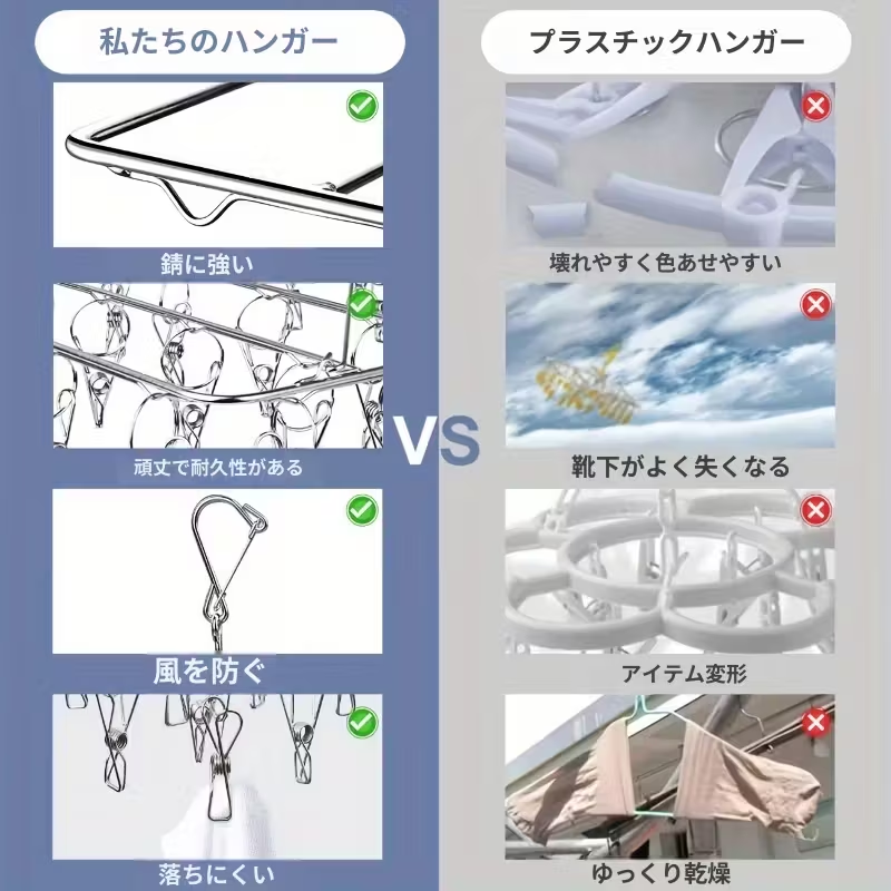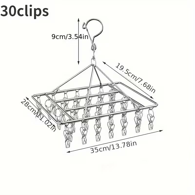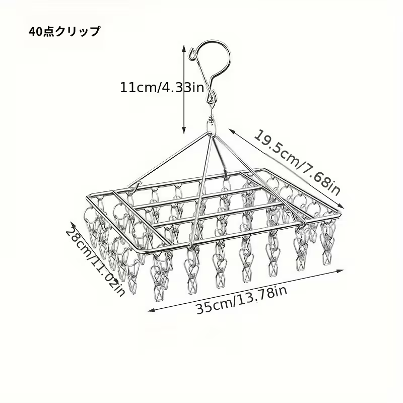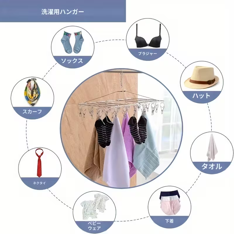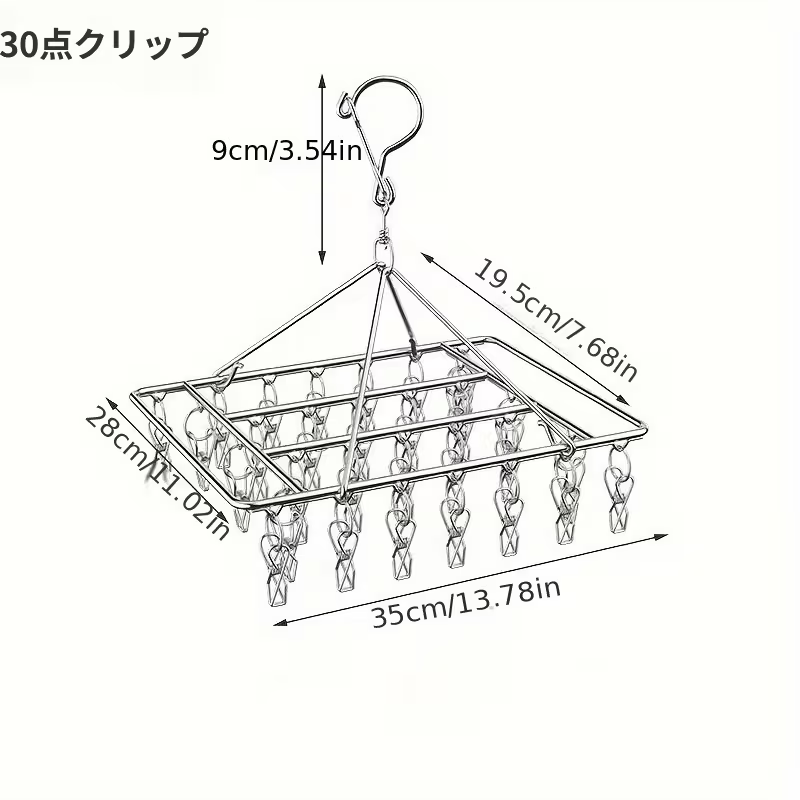 【5天内发送】ステンレス製 洗濯物干しラック 35個 クリップ付き 省スペース 吊り下げ式 衣類乾燥機 回転フック付き 防風 金属ハンガー 家庭用 屋外用 ZP-38